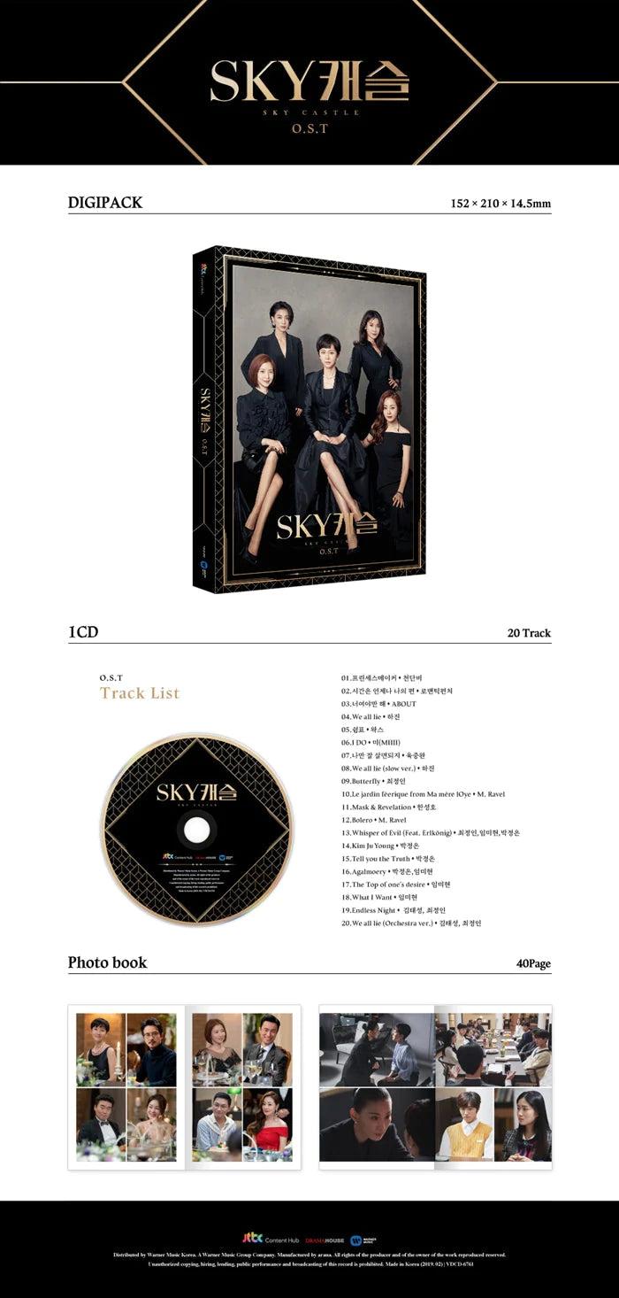 All the music containing the memories of the day that could not be missed in every scene and every scene was collected, and a total of 20 songs were recorded along with 12 background music songs, and all the characters of 'SKY Castle' were drawn. It evokes the emotions of the day. On the other hand, the CD contains a 40P photobook, so you will be able to travel inside the drama while looking into the story of the drama once again.